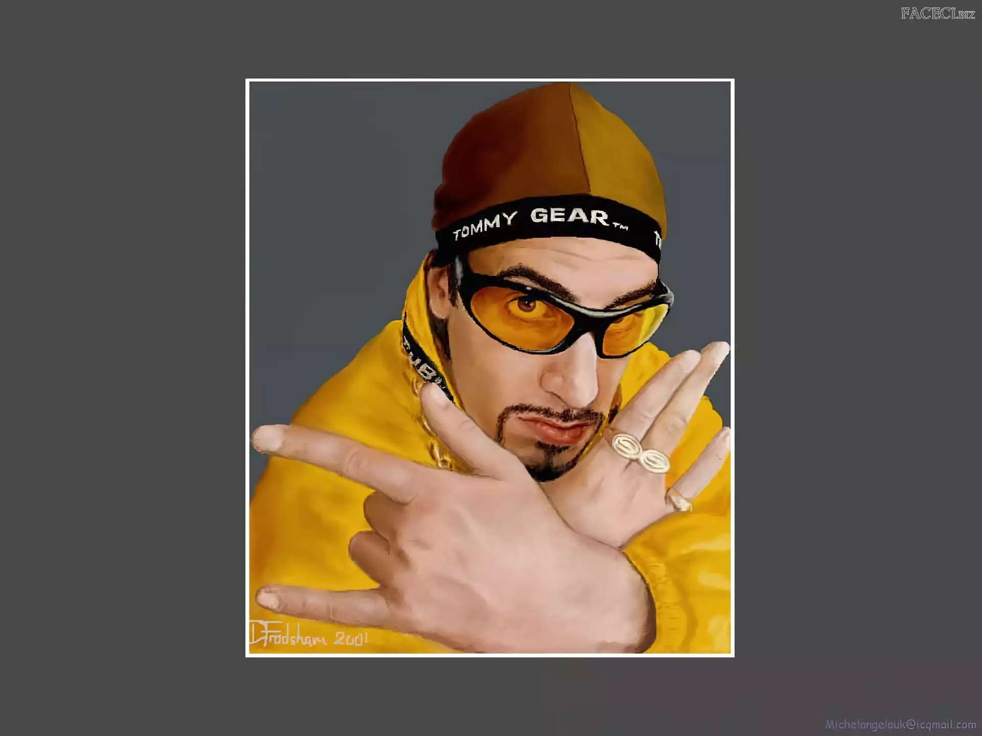 Sasha Baron Cohen, żółty strój Sasha Baron Cohen, zdjęcia Sasha Baron Cohen, gruby łańcuch złoty strój, Sasha Baron Cohen, okulary Sasha Baron Cohen, borat Sasha Baron Cohen, niebieski dres Sasha Baron Cohen, ali g